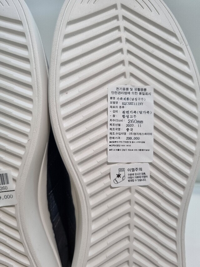 1. 제품 소재 (운동화인 경우에는 겉감, 안감을 구분하여 표시) 소가죽