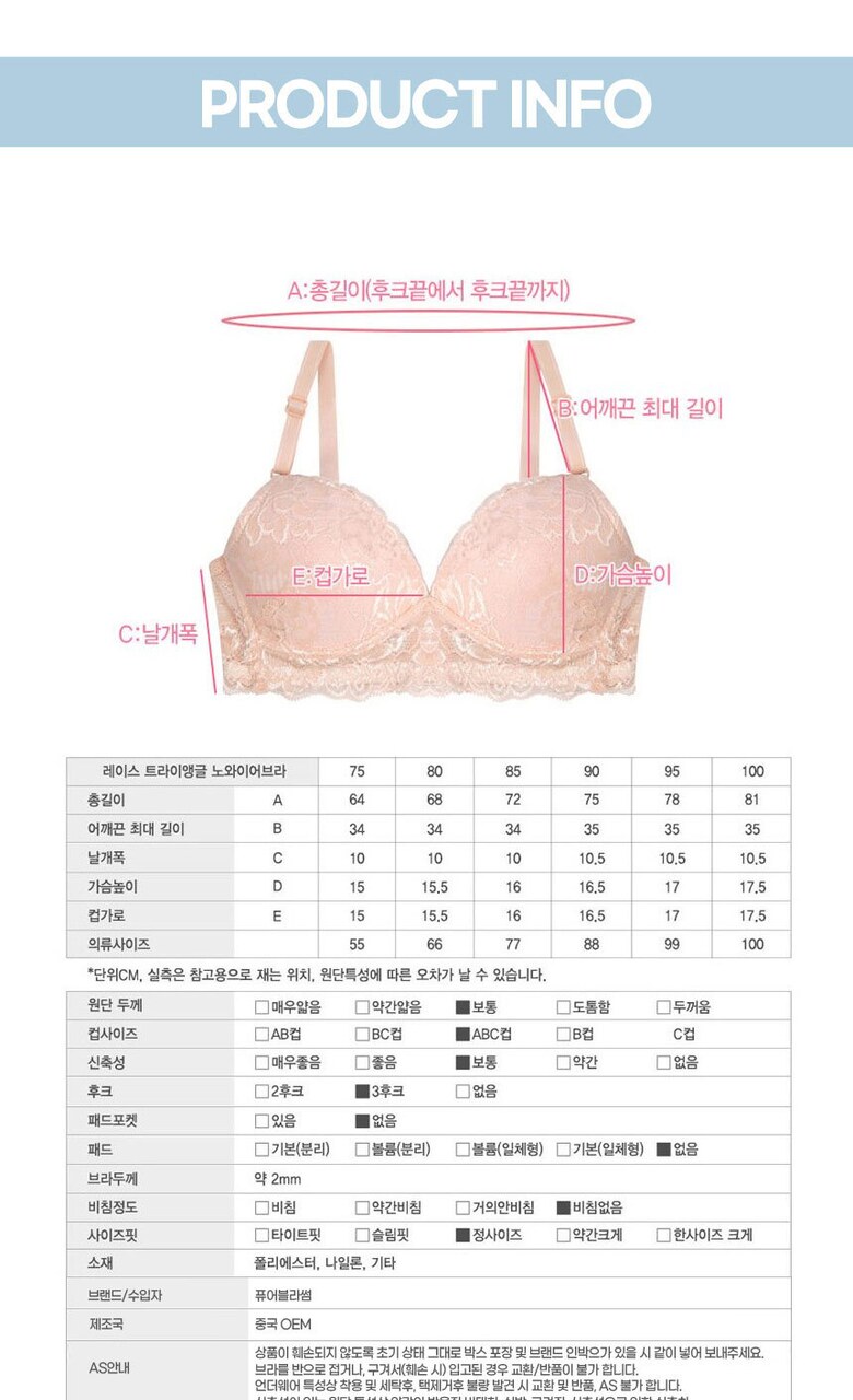 스벅 쿠폰 증정 [퓨어블라썸] 레이스 노와이어 브라/빅사이즈