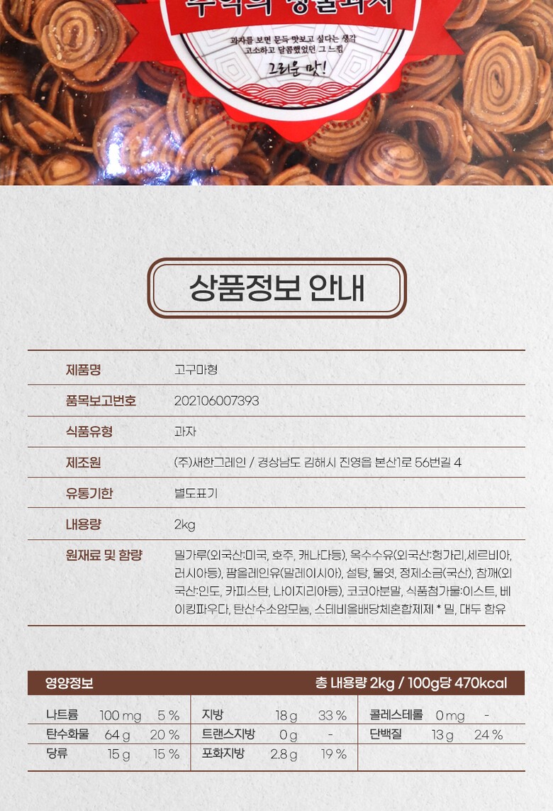 새한그레인 추억의과자 고구마형 2kg