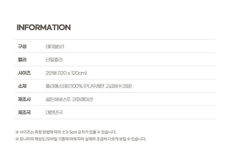 | 4. 제품구성 | 테이블보 1장 |