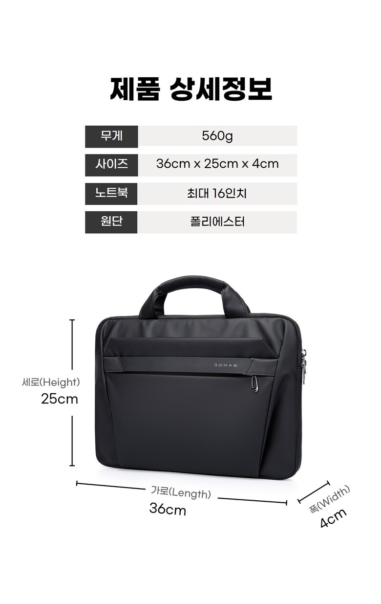남성 가벼운 16인치 노트북 브리프케이스 서류가방
