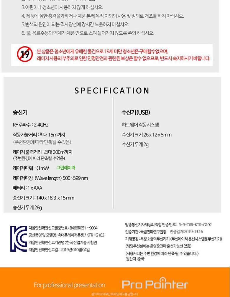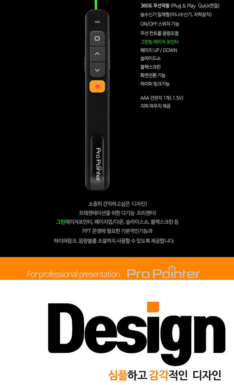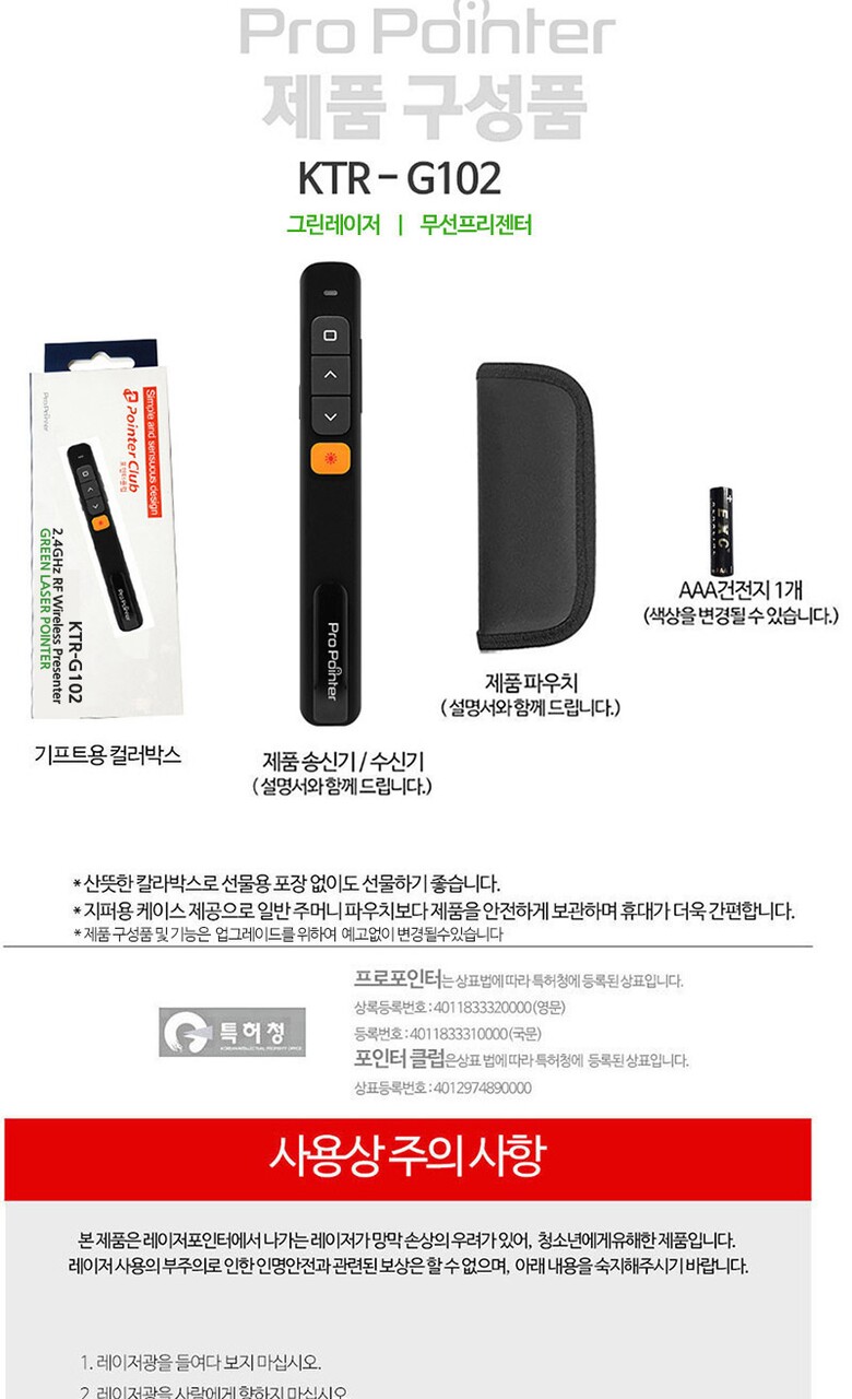 [포인터클럽] 무선프리젠터 KTR-G102 (그린레이저)