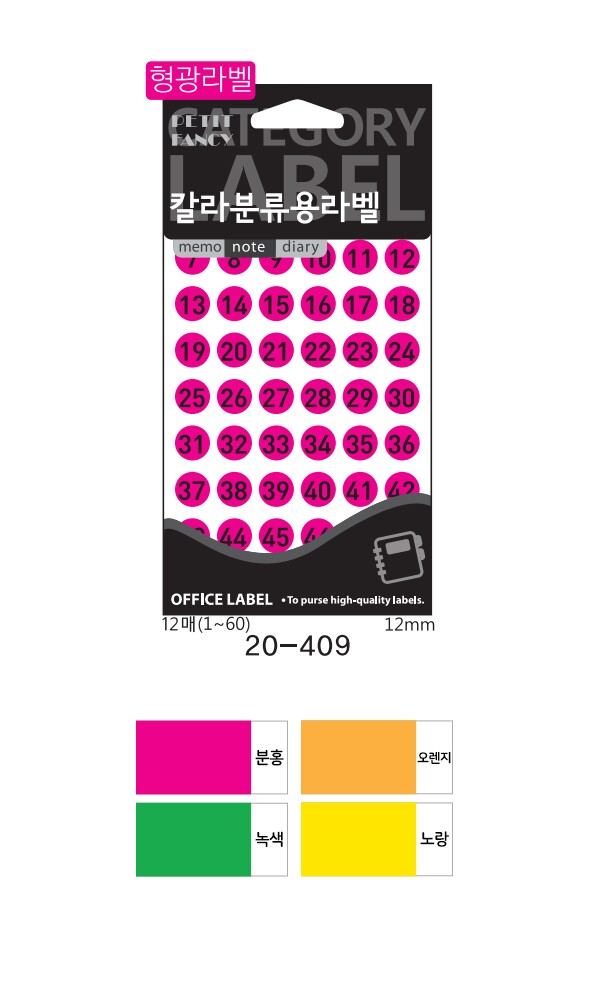 #쁘띠 #라벨지 #20409 #12mm #12매 #형광녹색 #알파 #alpha