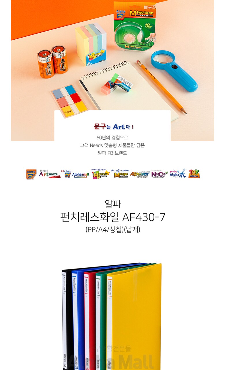 [알파] 펀치레스화일 AF430-7(PPA4상철)(낱개)