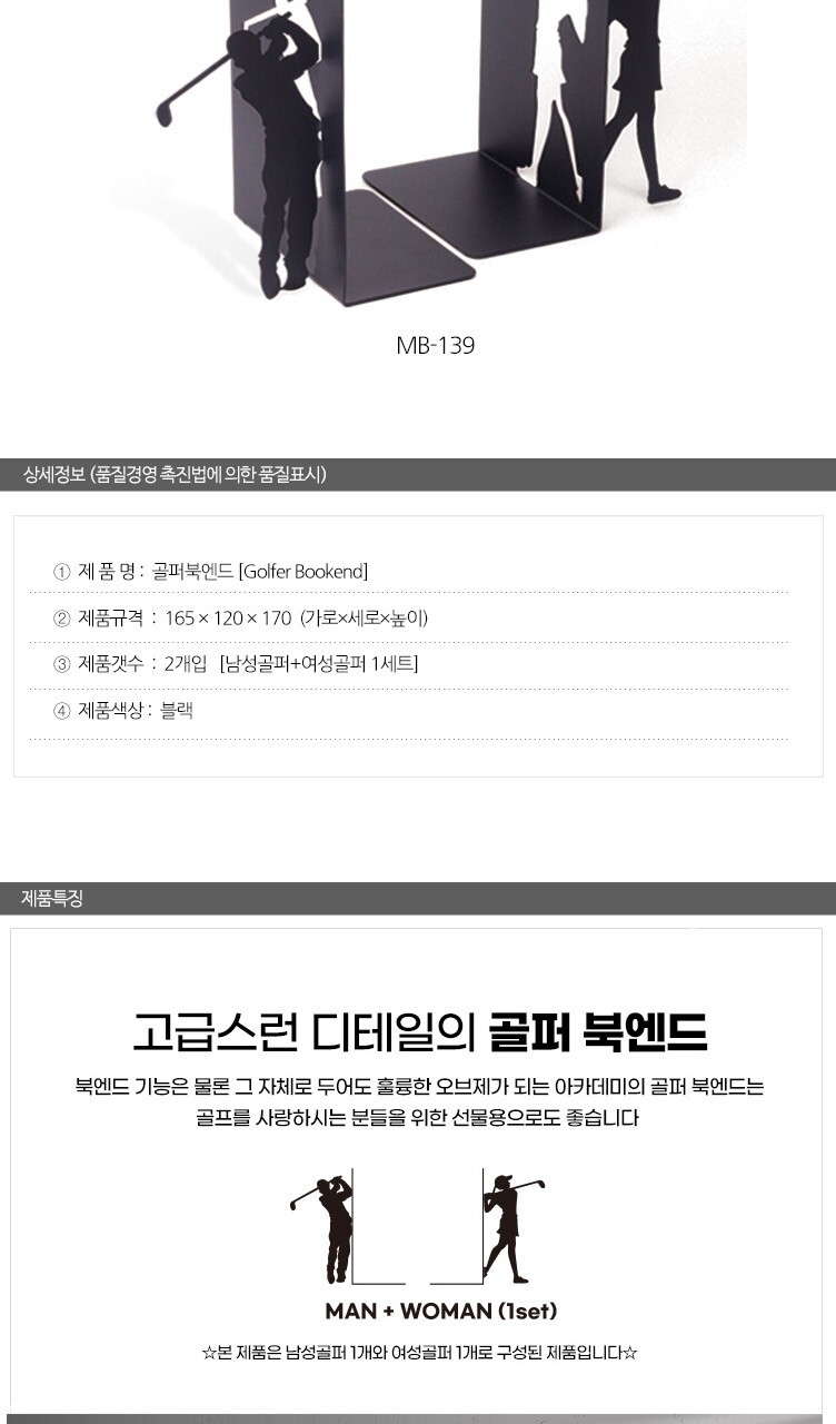 [에이에스코리아] 북엔드 MB-139 (165x120x170mm골퍼)
