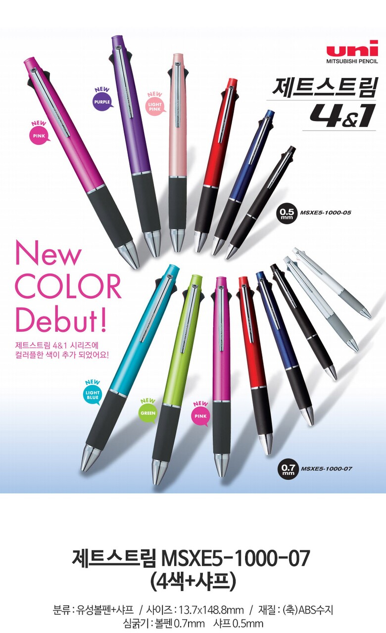 [유니] 제트스트림4색 MSXE5-1000 0.7mm(볼펜0.7mm+샤프0.5mm)(낱개)