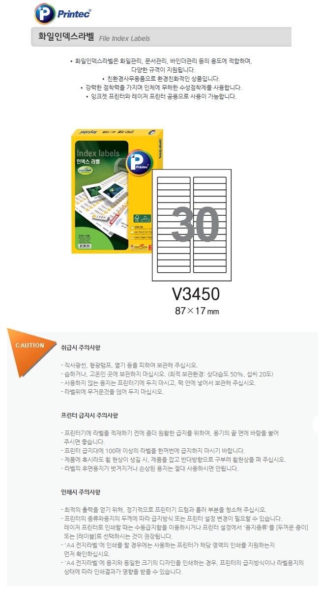 #프린텍 #화일인덱스라벨 #V3450100 #100매 #30칸 #알파 #alpha
