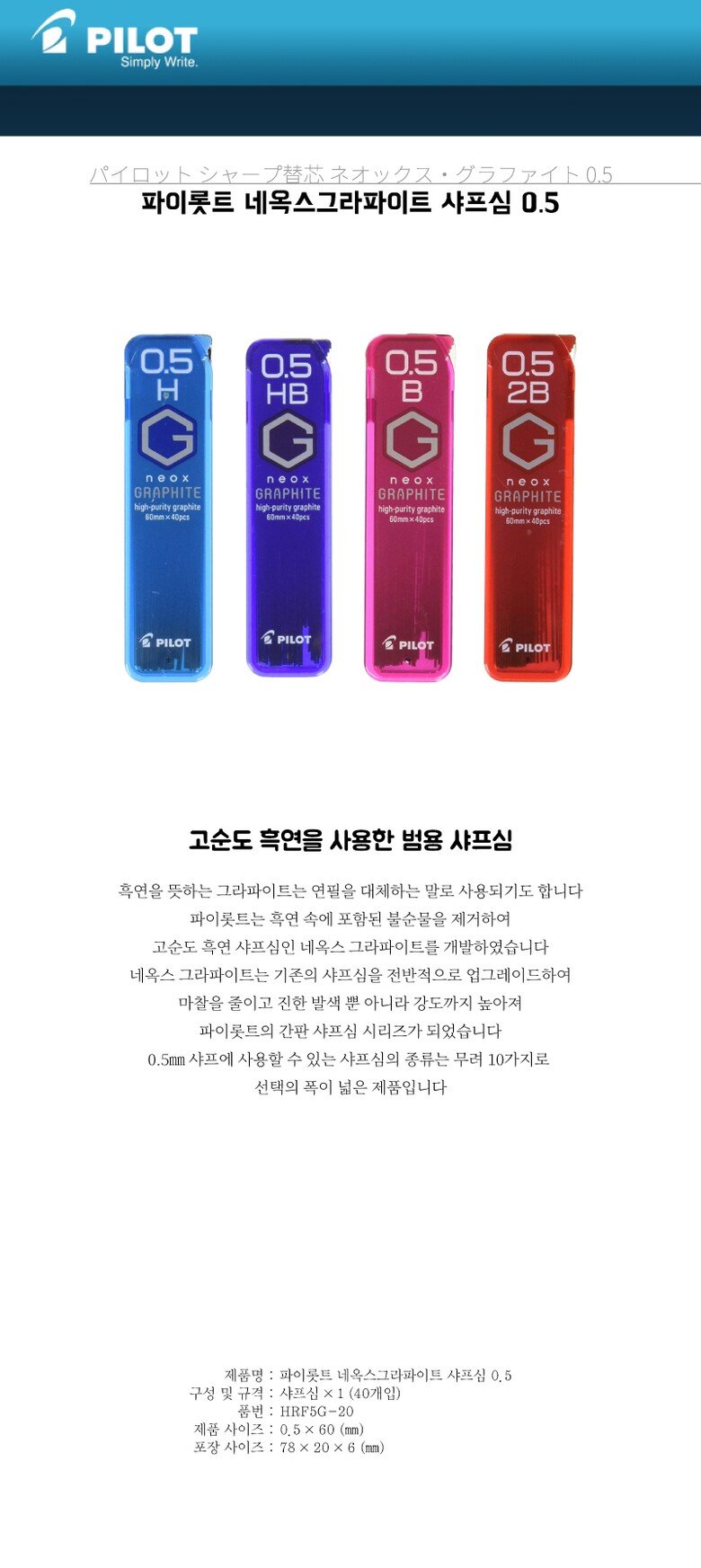 [파이롯트] 샤프심 네옥스그라파이트 0.5mm40본 (2B) (1갑10입)
