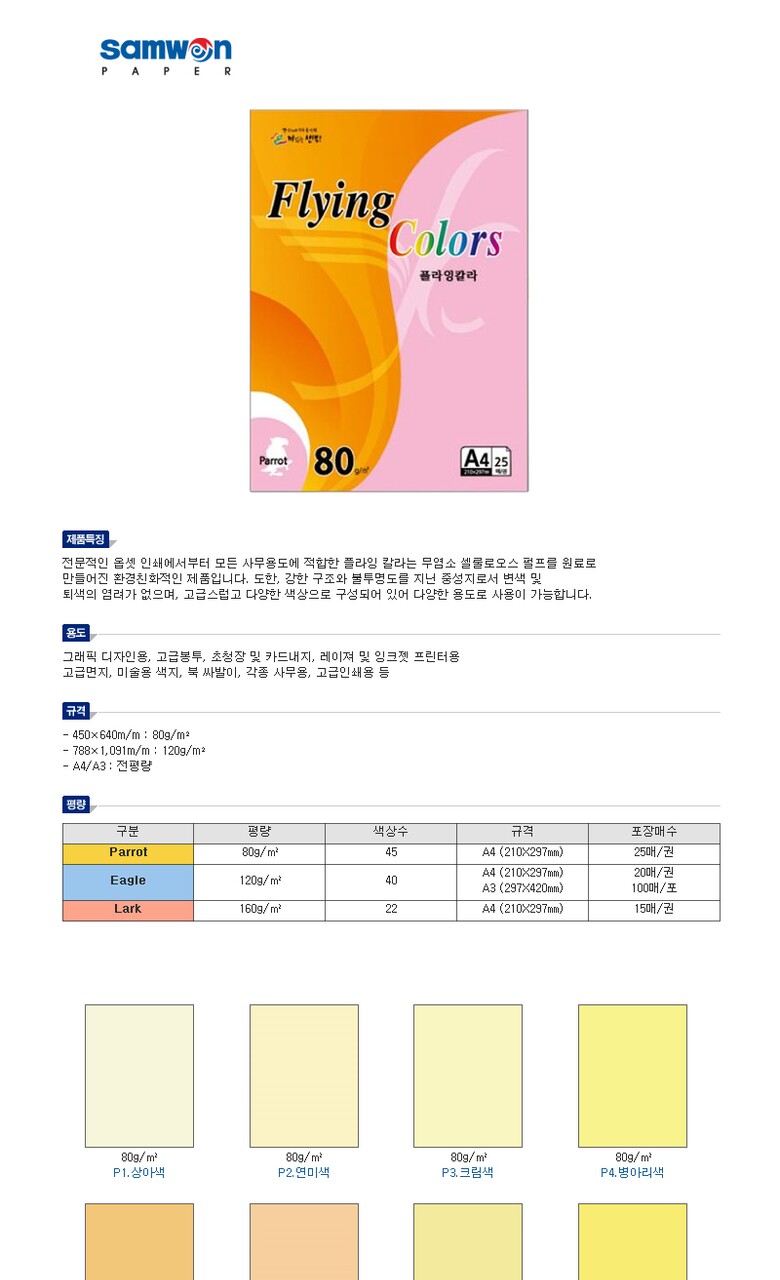 #삼원 #OA용지 #플라잉칼라 #파이롯 #P45 #진녹색 #A4 #80g #25매 #알파 #alpha