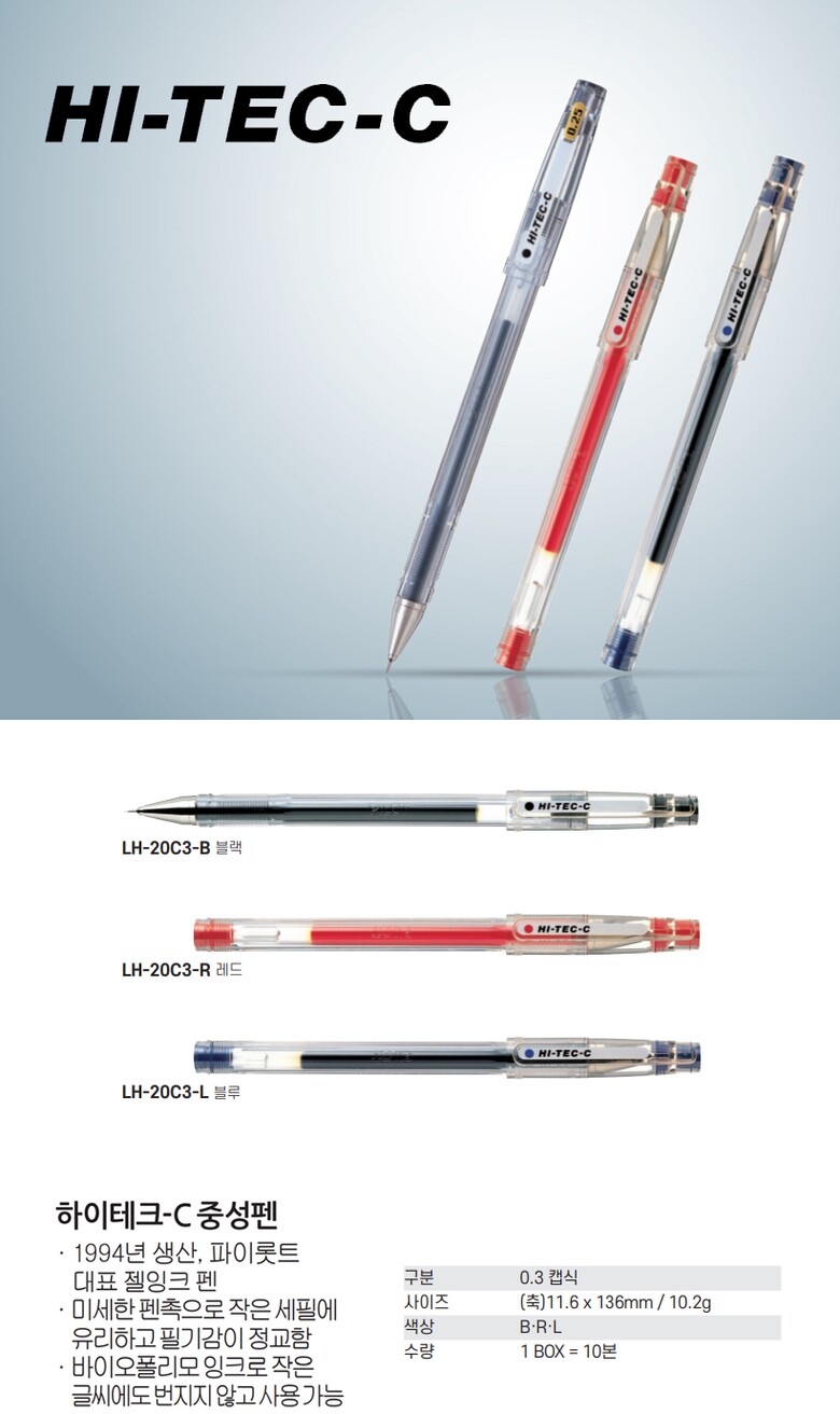 [파이롯트] 중성펜 하이테크C 0.3mm (색상선택) (1갑10입)
