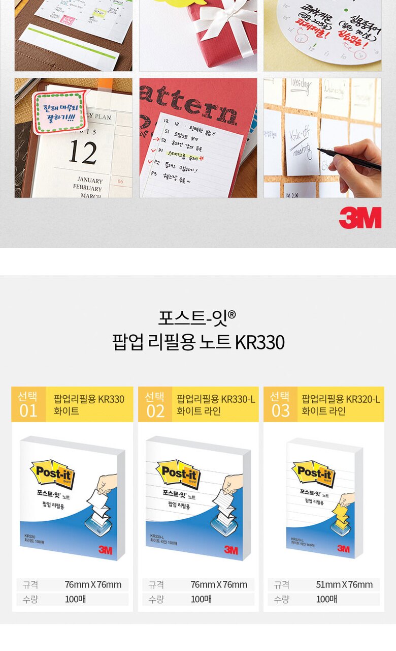 [3M] 포스트잇 팝업리필 KR-330(76x76mm100매화이트라인)