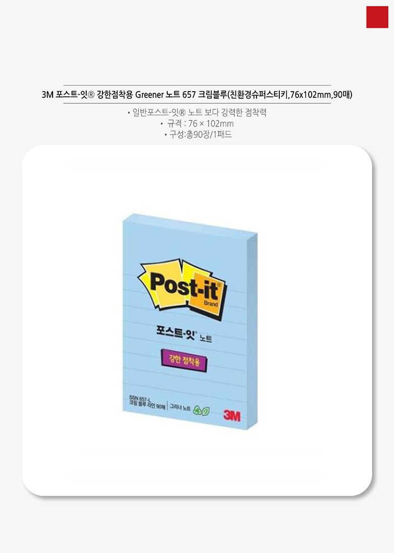 [3M] 포스트잇 친환경노트 657-SSNRC (76x102mm90매블루)