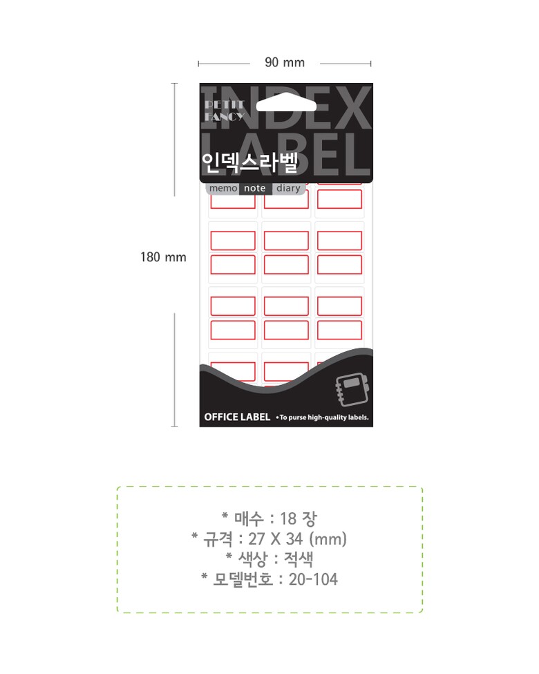 [쁘띠] 견출지 20-104 (27x34mm18매적색)