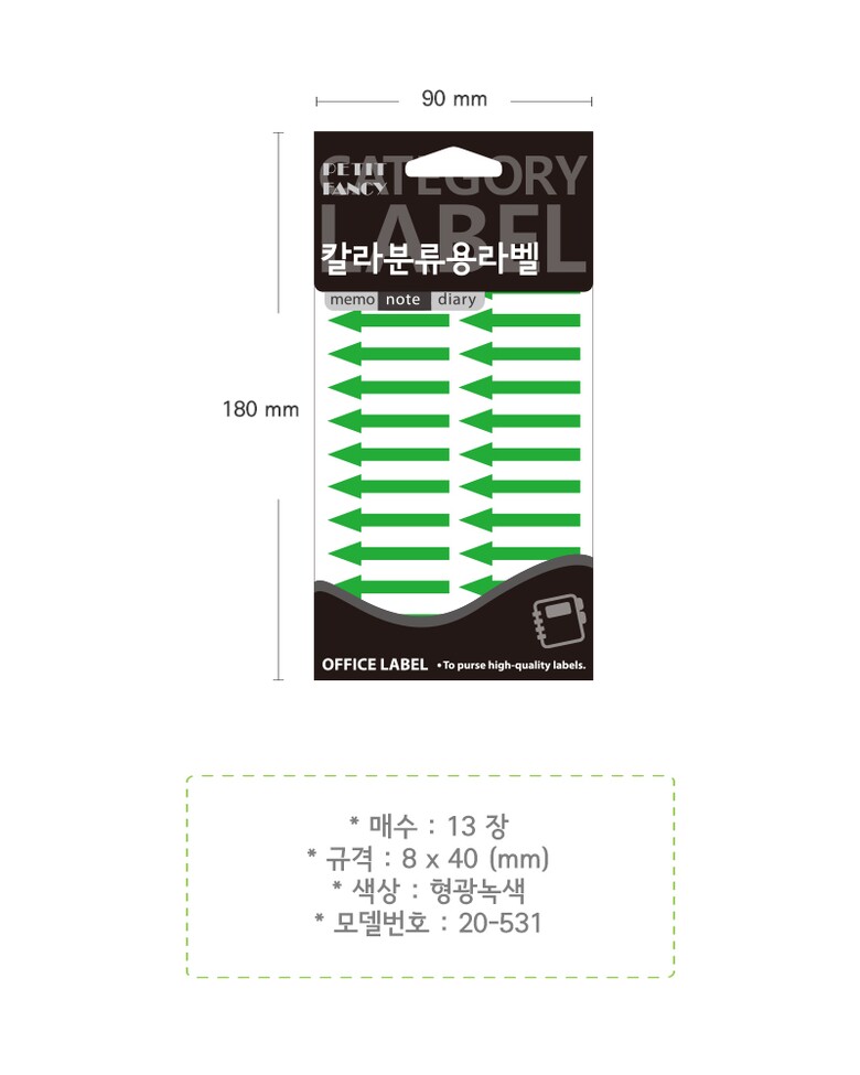 [쁘띠] 라벨지 20-531 (8x40mm13매형광녹색)