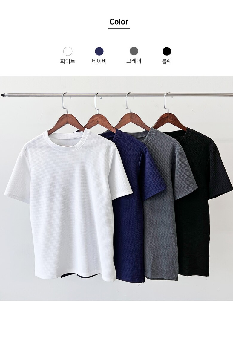 블레오 여성 여름 루즈핏 기본 라운드 무지 데일리 엠보 반팔 티셔츠