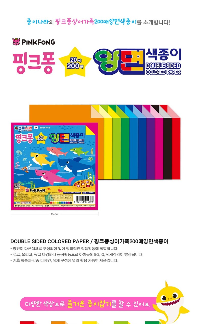 [종이나라] 핑크퐁상어가족 양면 색종이 200매