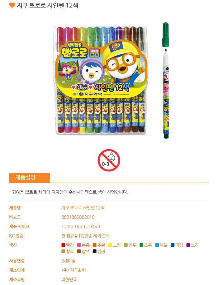#지구화학 #뽀로로 #싸인펜 #12색 #무독성 #수용성 #알파 #alpha
