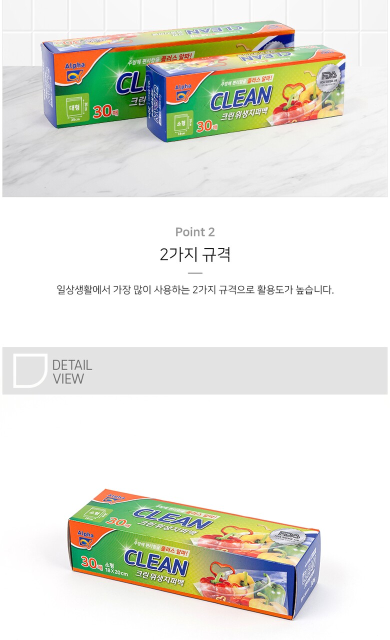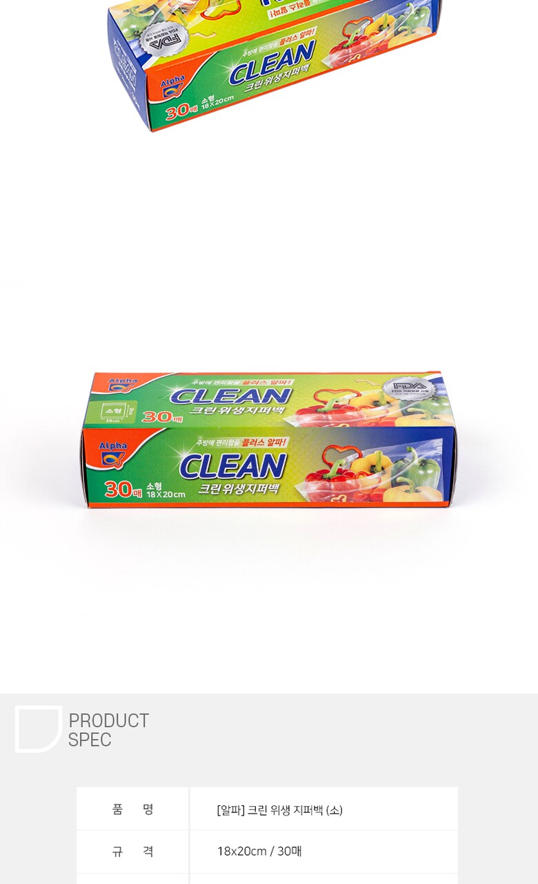 [알파] 크린위생 지퍼백 소형 (30매18x20cm)