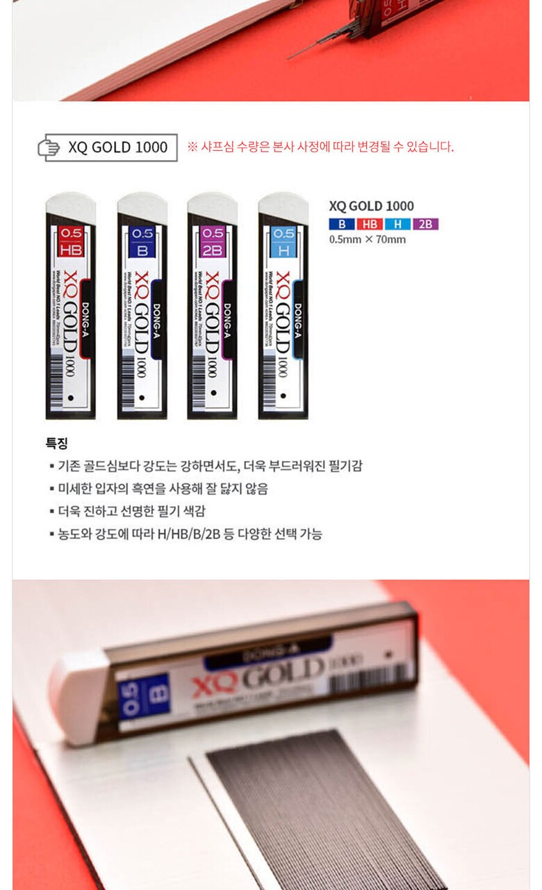 [동아] 샤프심 XQ골드1000 0.5mm 70mmx40본 (HB) (1갑72입)