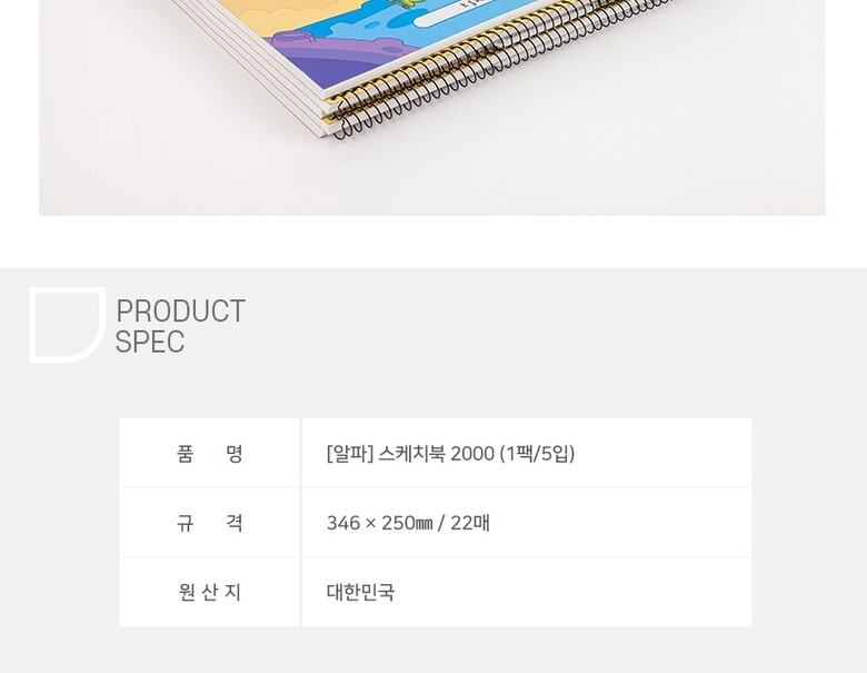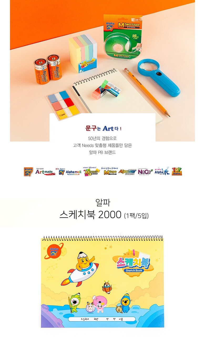 [알파] 몽필이 학용 두꺼운 스케치북 2000 (1팩 5입)