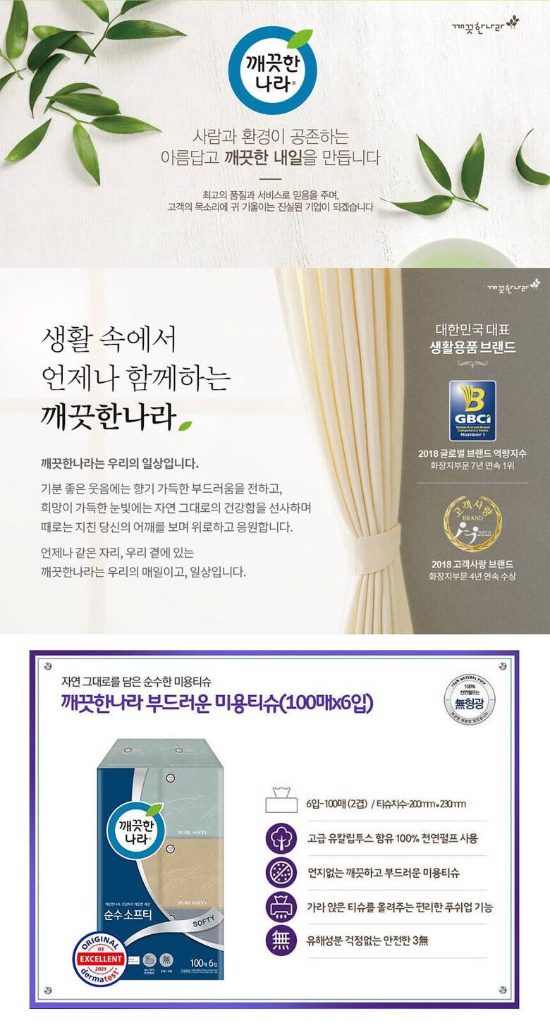 #깨끗한나라 #정사각티슈 #순수소프티 #100매x6입 #알파 #alpha