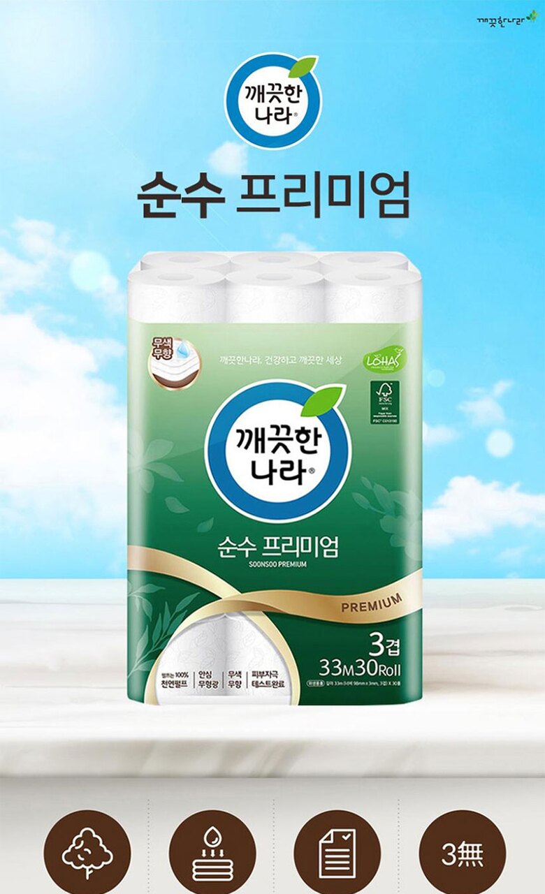 [깨끗한나라] 화장지 순수프리미엄 (33M(3겹)x30롤)