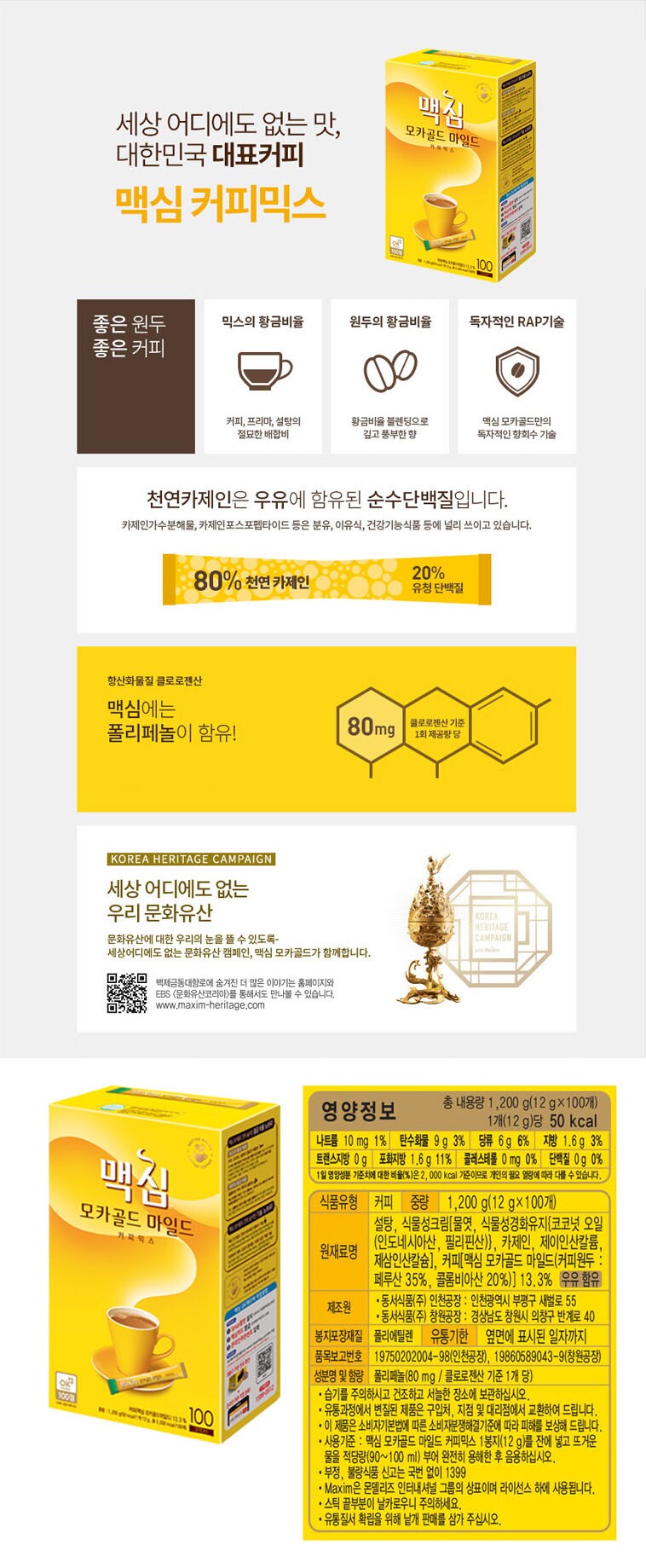 | 1. 포장단위별 용량(중량),수량,크기 | 102545 맥심 모카골드 마일드 커피믹스 100T |