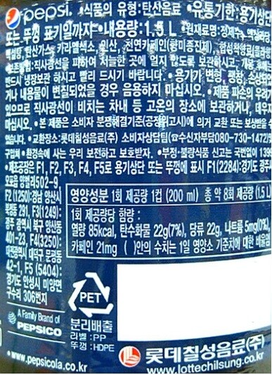 | 1. 포장단위별 용량(중량),수량,크기 | 롯데칠성 펩시 콜라 15L |