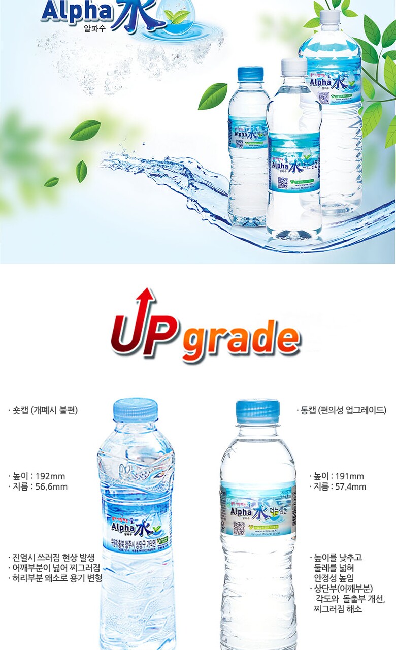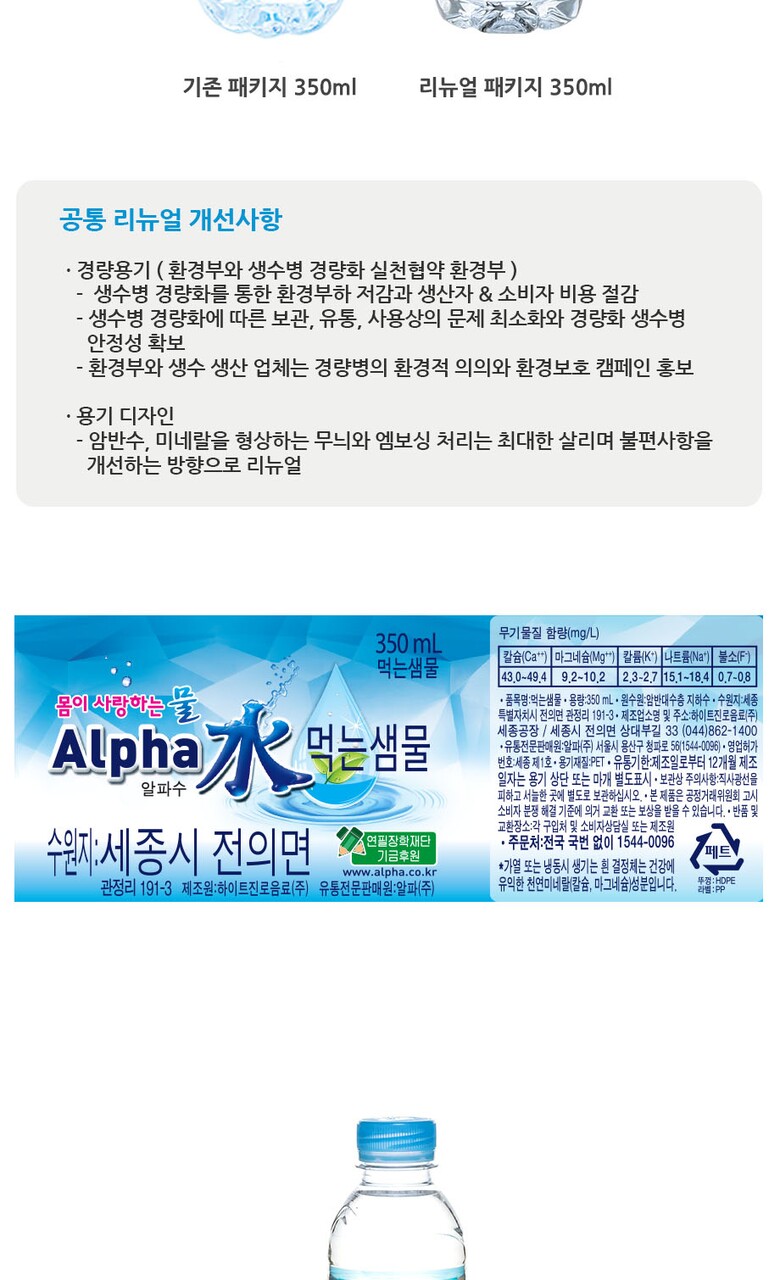 1. 포장단위별 용량(중량),수량,크기 | 알파 알파수 생수 350ml X 20입 박스 |