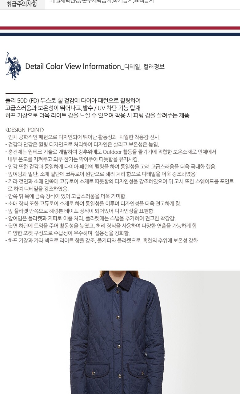 [USPA] 여성 카코트 퀼팅재킷(네이비)_HWP18-JP101