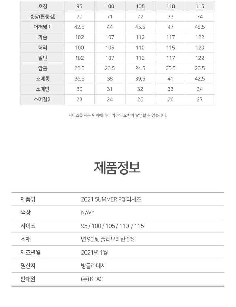1. 제품 소재 (섬유의 조성 또는 혼용률을 백분율로 표시, 기능성인 경우 성적서 또는 허가서) 면 95% 폴리우레탄 5%