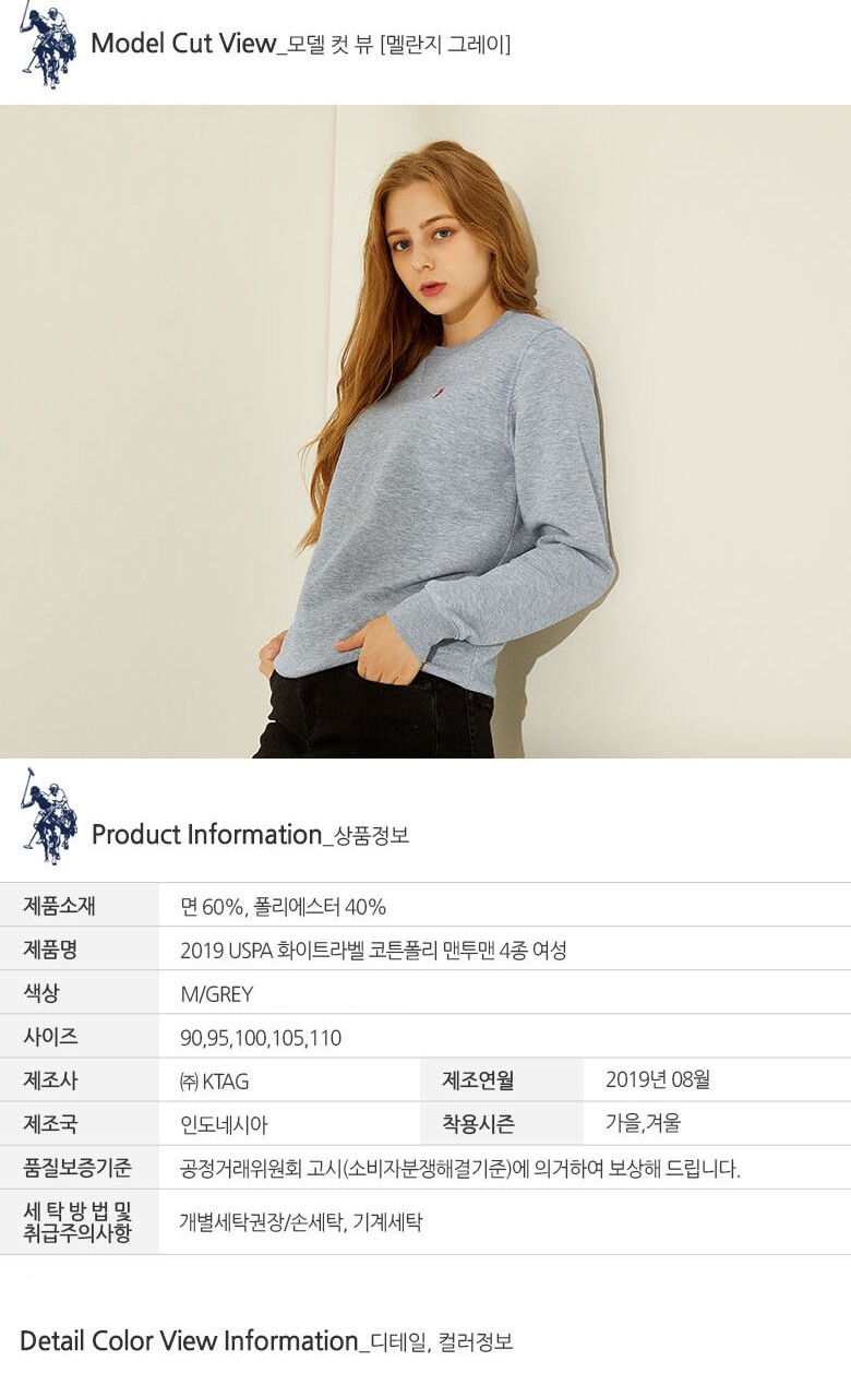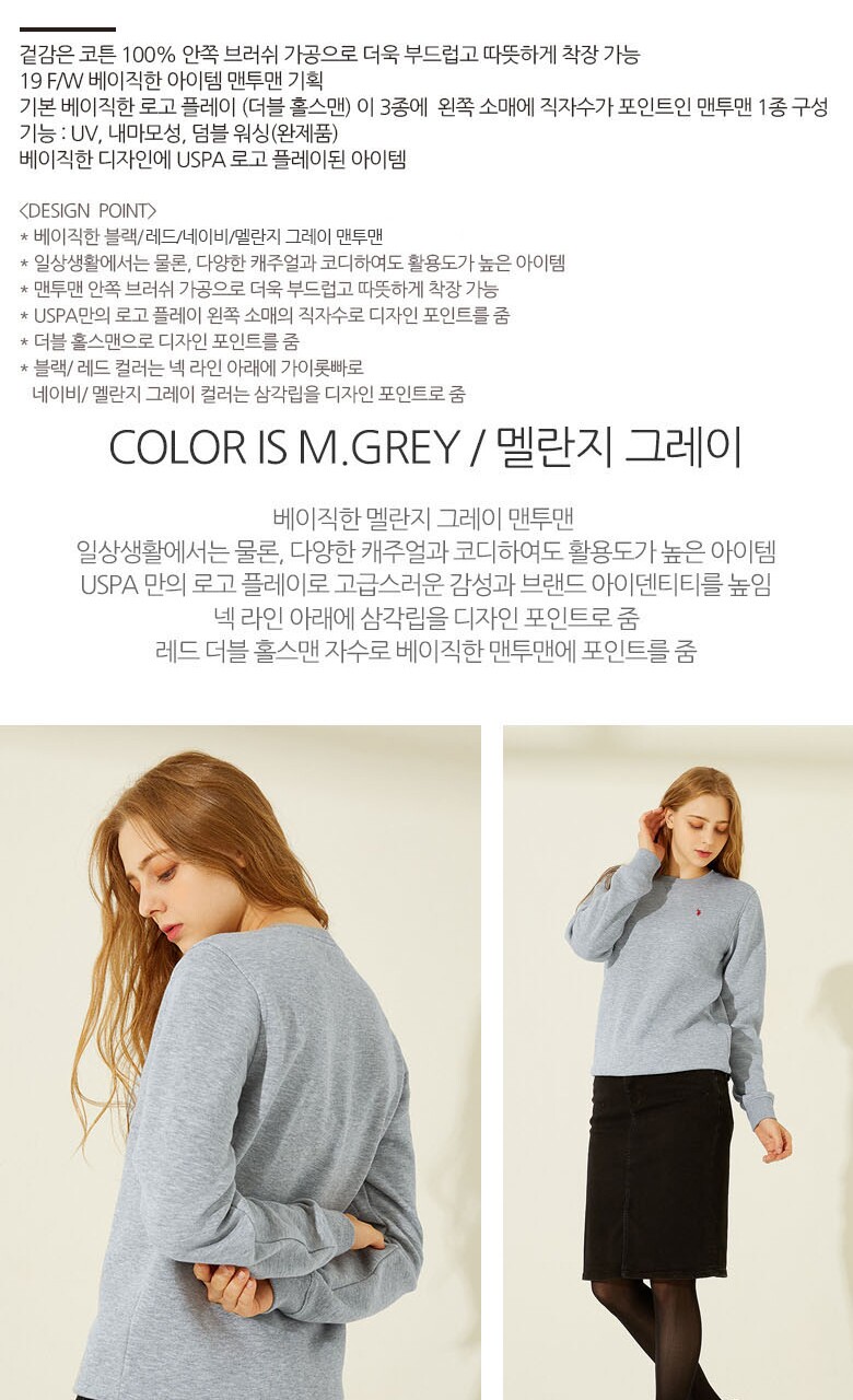 USPA 화이트라벨 여성 코튼폴리 맨투맨(그레이)_HWP19-MT403GY