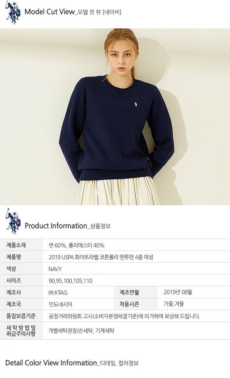 USPA 화이트라벨 여성 코튼폴리 맨투맨(네이비)_HWP19-MT404NV