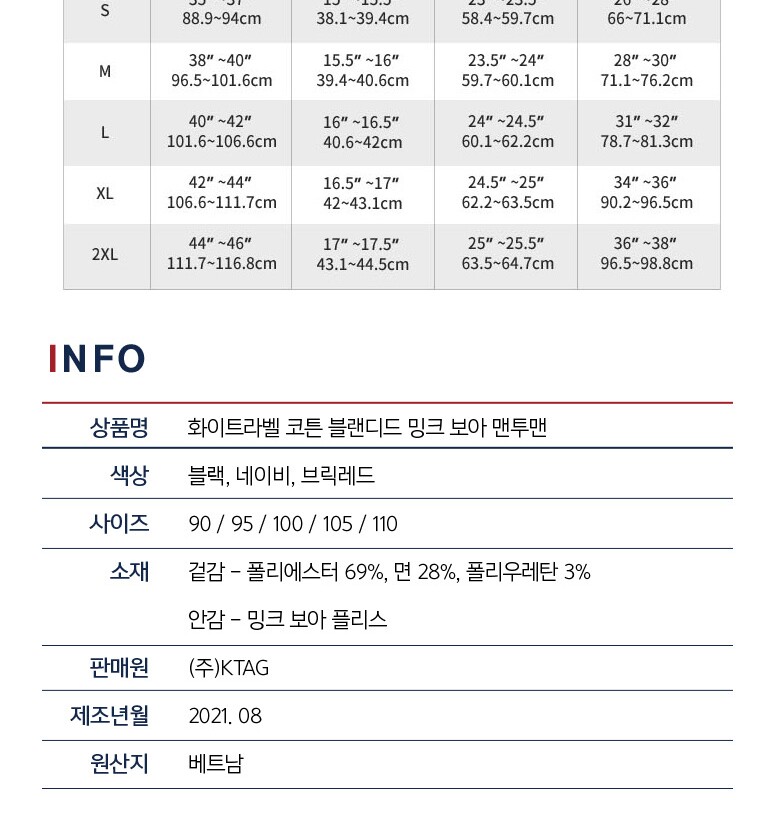 1. 제품 소재 (섬유의 조성 또는 혼용률을 백분율로 표시, 기능성인 경우 성적서 또는 허가서) | 겉감 폴리에스터 69% 면 28% 폴리우레탄 3% 안감 밍크 보아 플리스 |