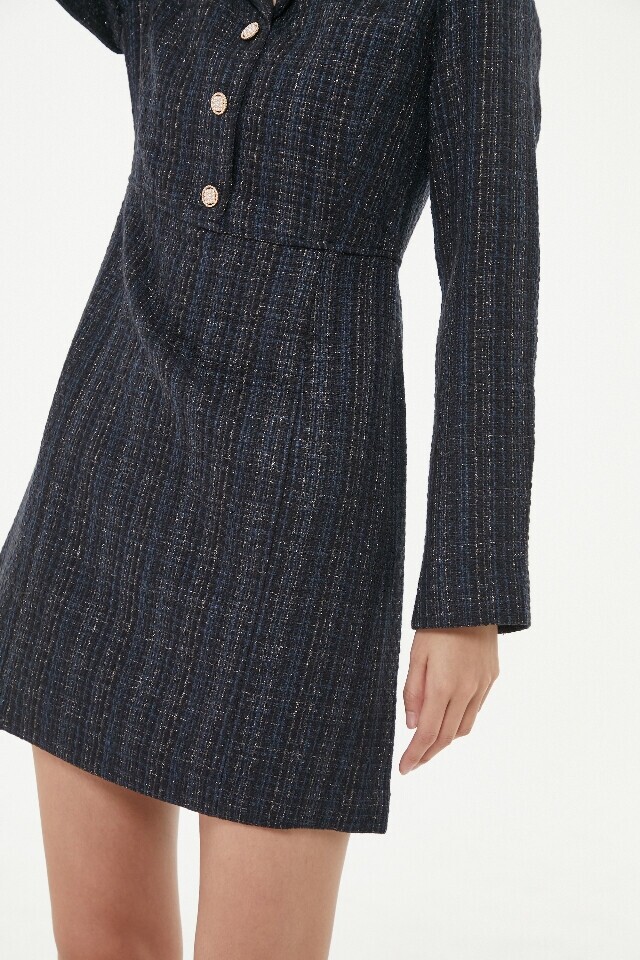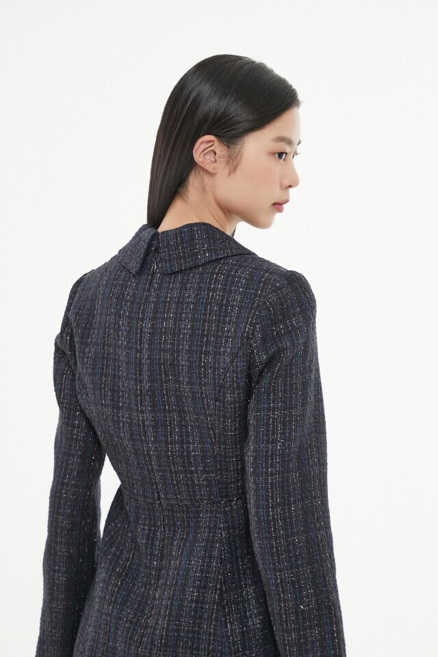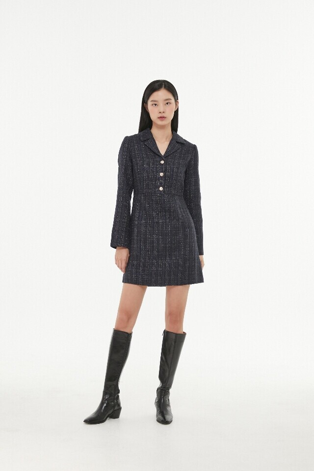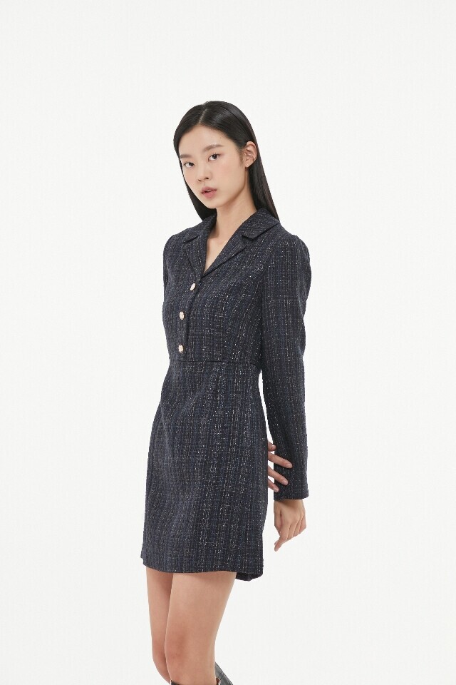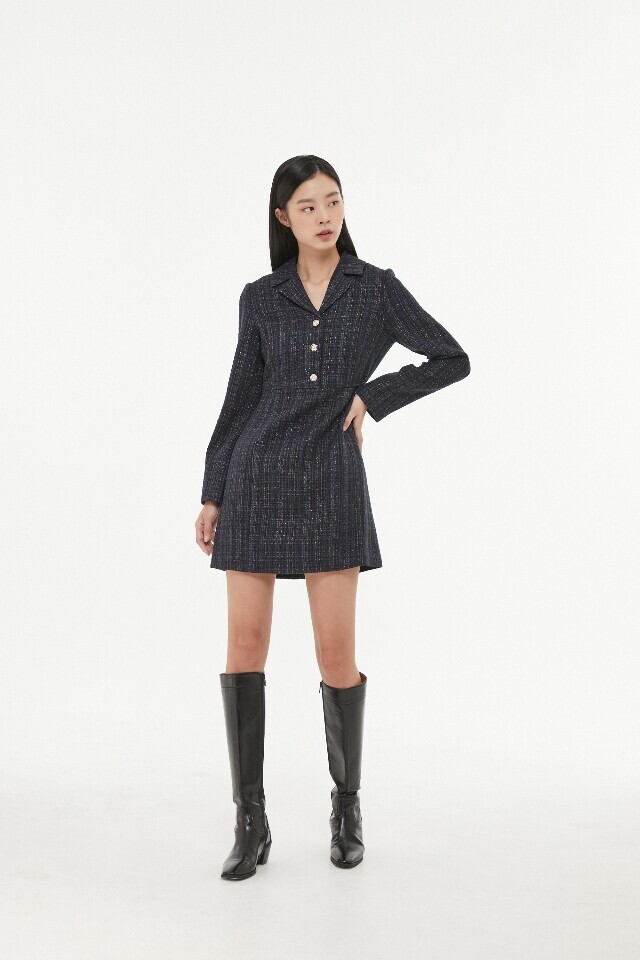 AP1WO160 메탈 트위드 카라 원피스