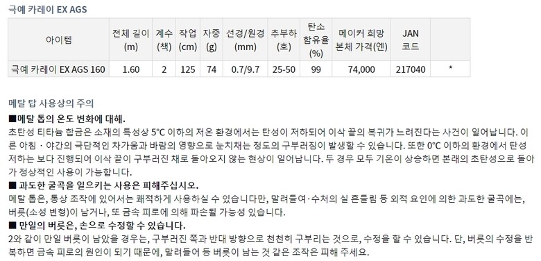 다이와 쿄쿠에이 카레이 EX AGS 160 바다 선상 낚싯대 한국다이와정공