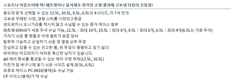 다이와 쿨러는 모델에 따라 규격과 사양이 다르니, 해당 상품의 대표이미지는 색상정보만 참고해주시기 바랍니다