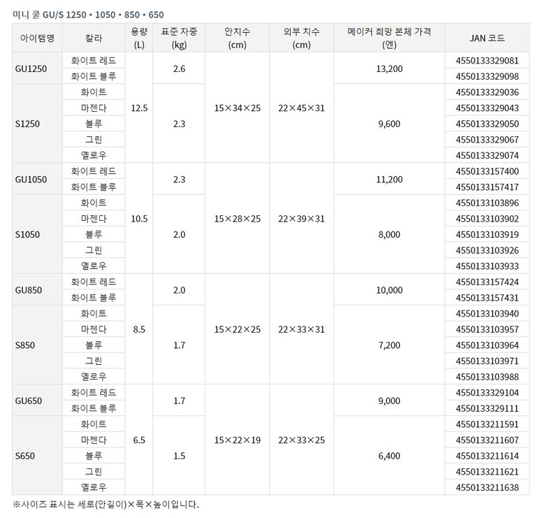 해당 상품은 [ 미니 쿨 GU1050 ] 모델의 다이와 쿨러입니다.