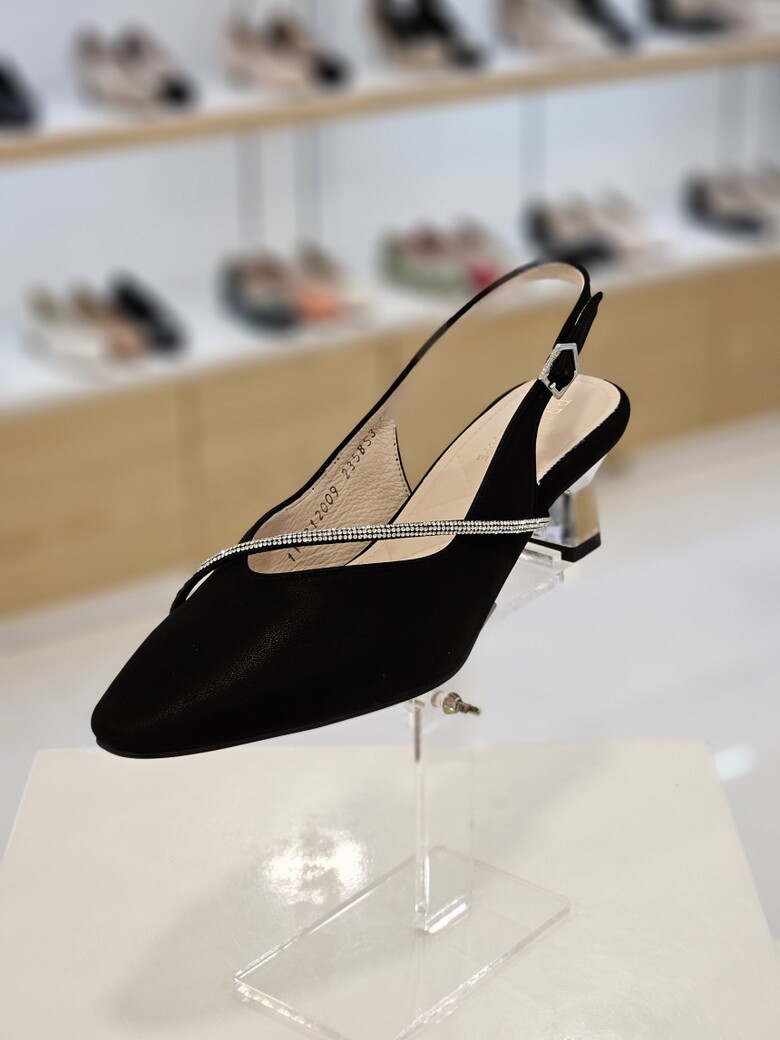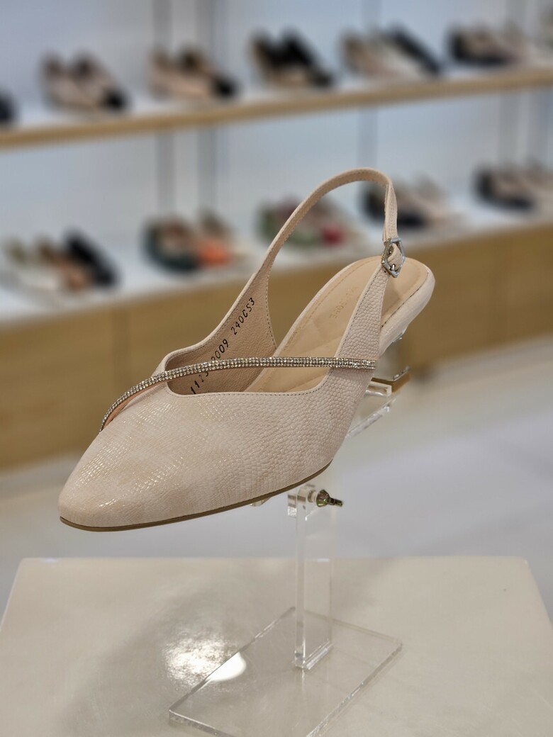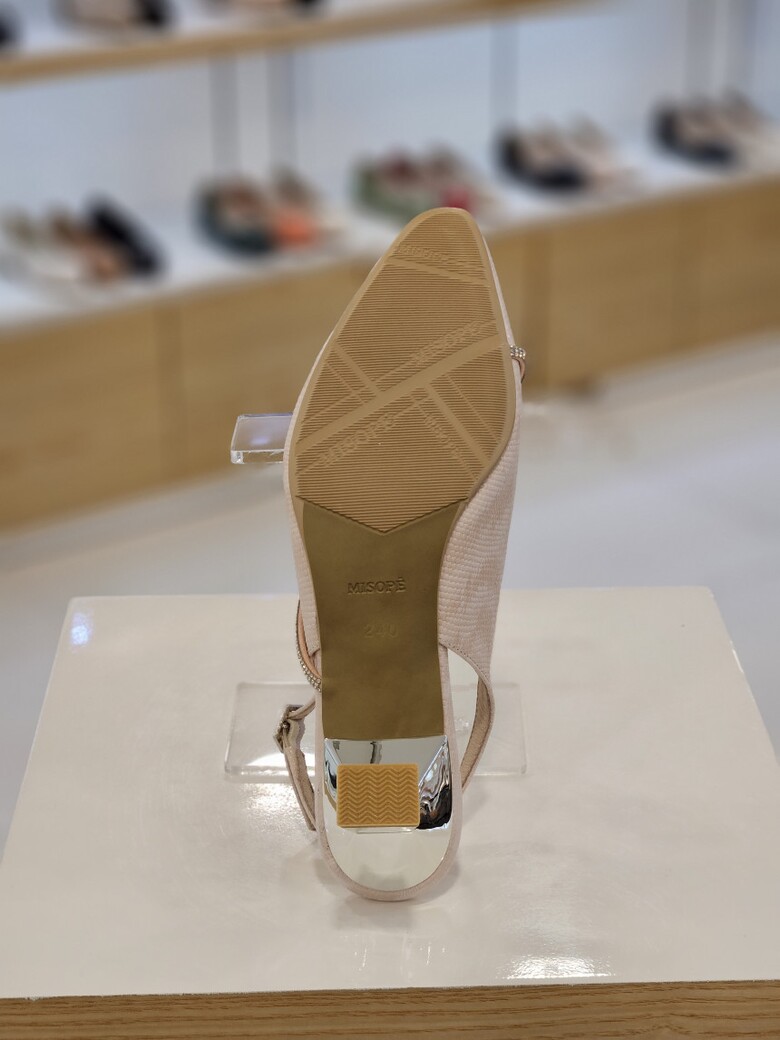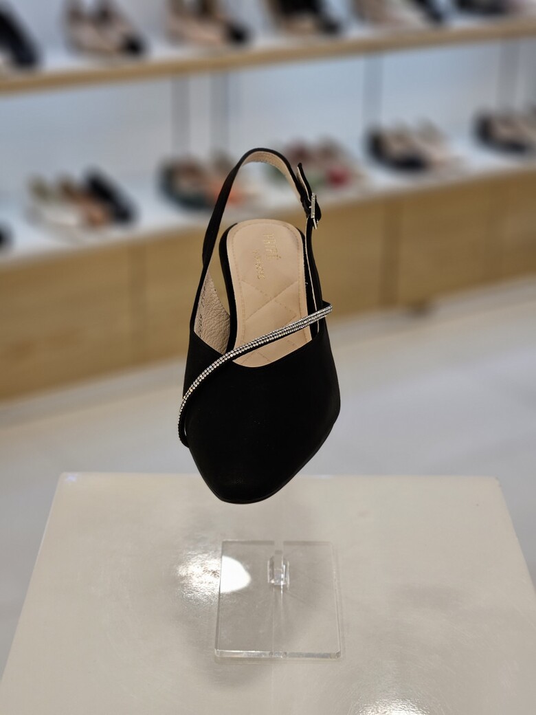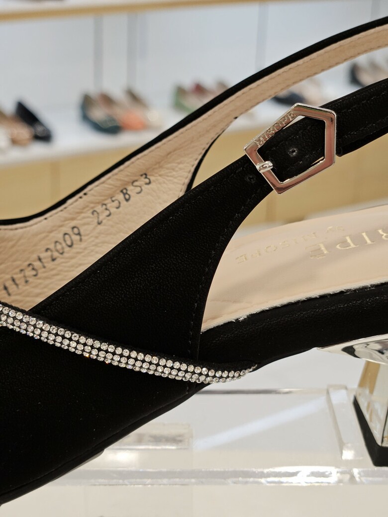 ▶ 은은한 물결무늬패턴과 핫픽스띠로 반짝이는 포인트를 준 슬링백 힐