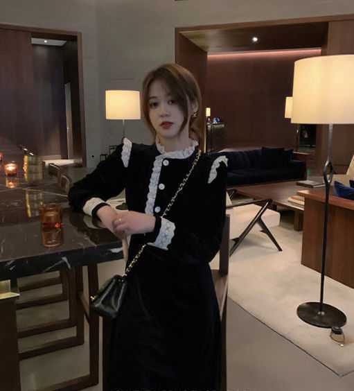 에피 레이스 라이너 봄가을 벨벳 원피스_210809_DY18