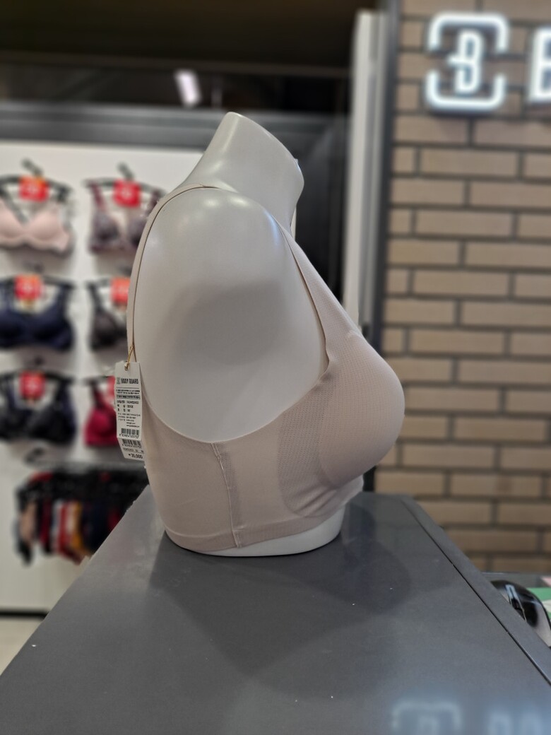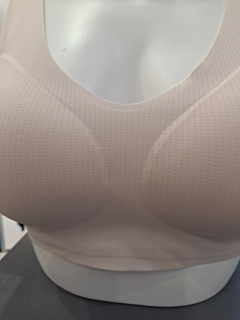 4. 가슴모양을 전체적으로 감싸는 물방울 모양의 몰드로 흐트러짐 없이 가슴을 잡아 자연스러운 아웃핏 연출함.