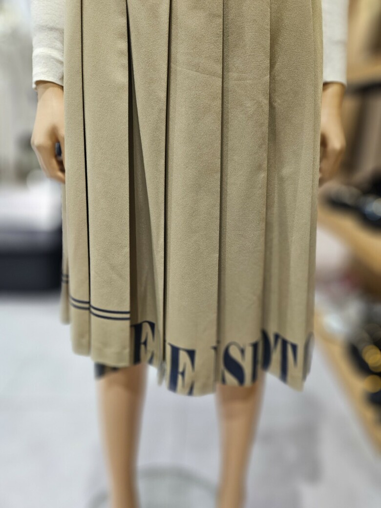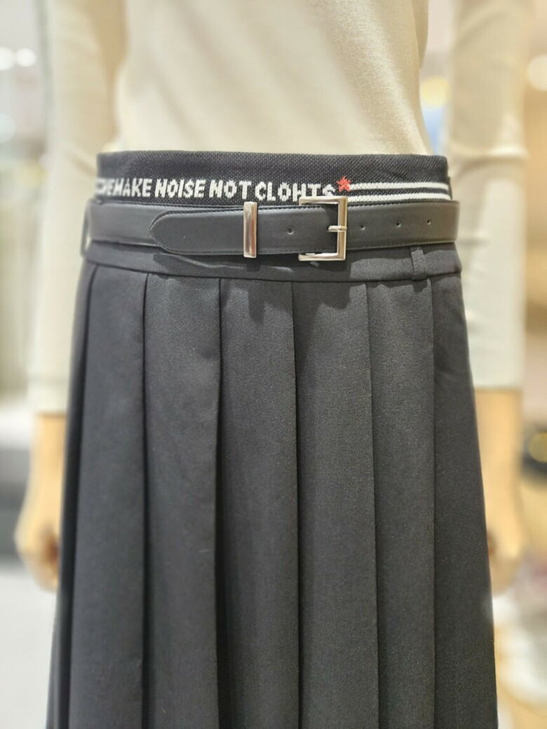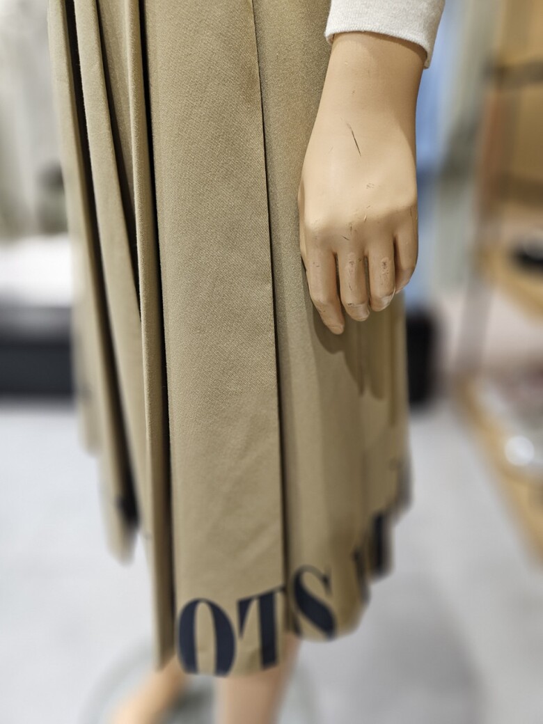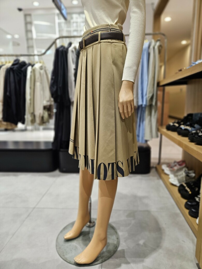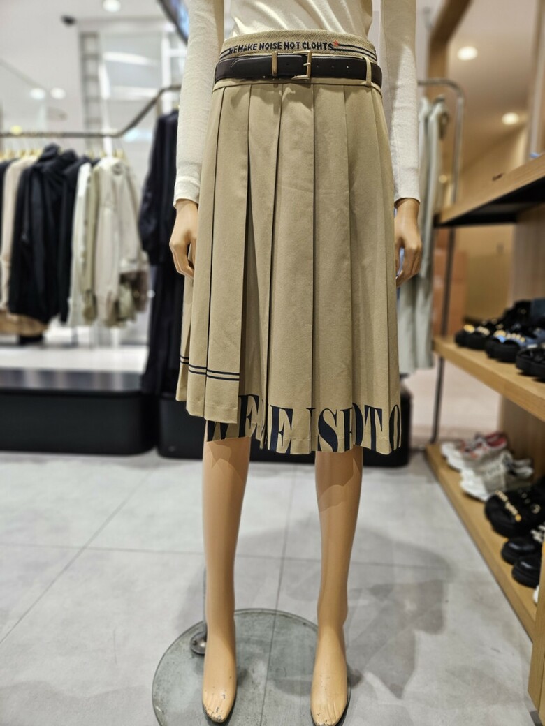 주름 라인이 예쁜 미디 기장의 스커트로 레터링 포인트가