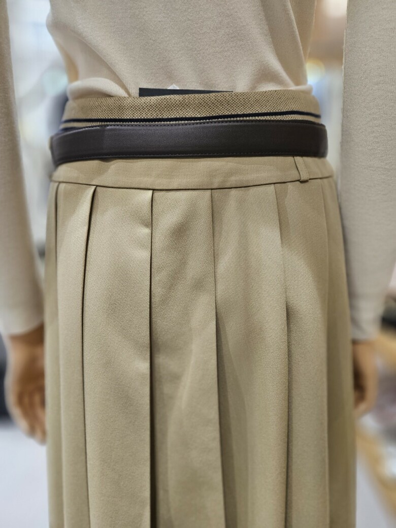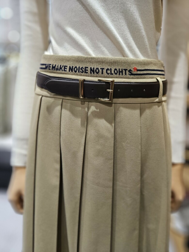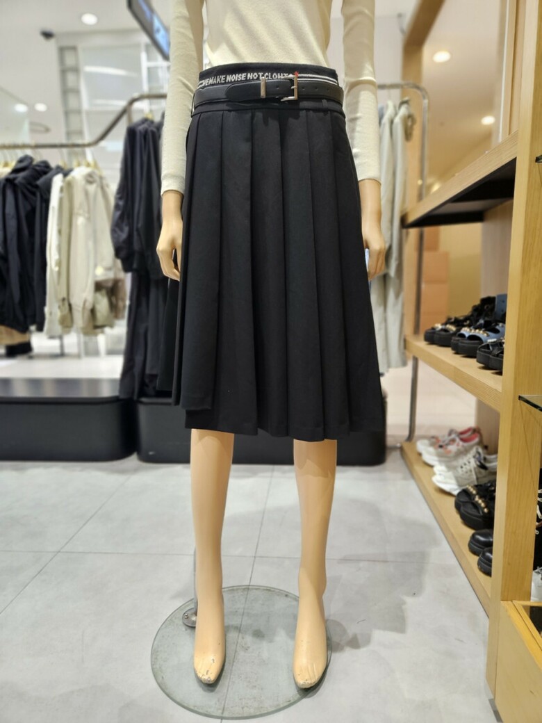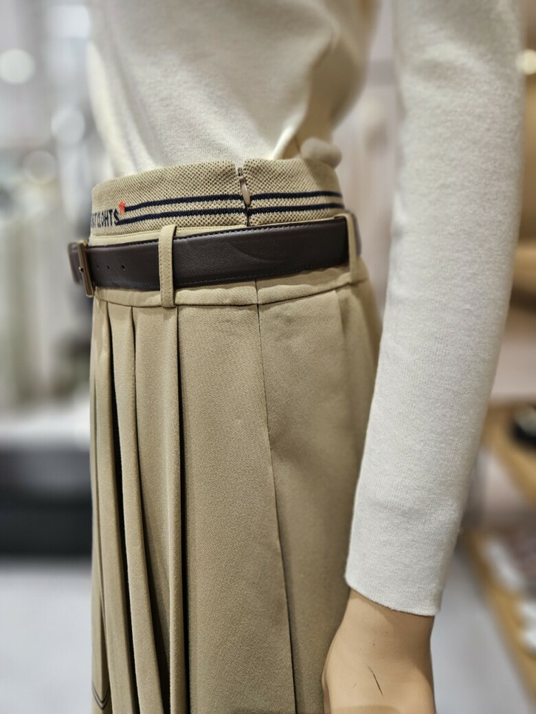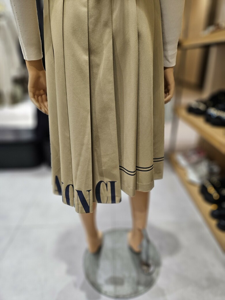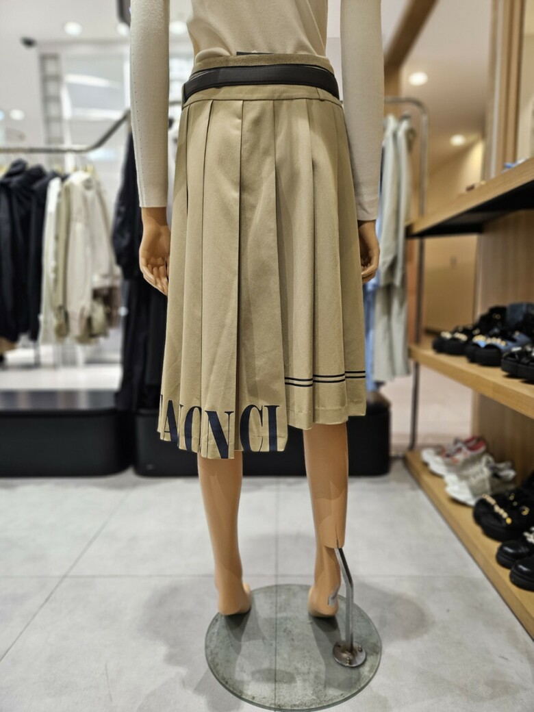주름 라인이 예쁜 미디 기장의 스커트로 레터링 포인트가