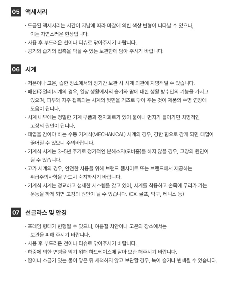 | 7. 취급시 주의사항 | 상품상세 참조 |