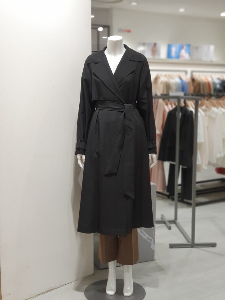 페미닌한 무드의 벨티드 트렌치코트입니다.