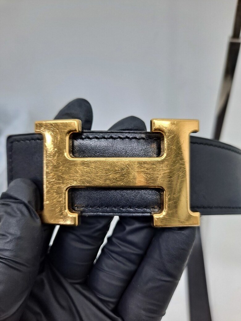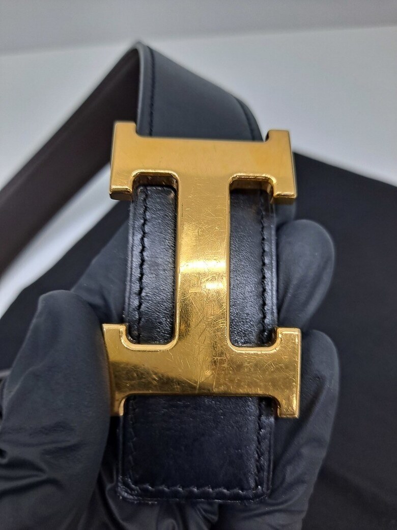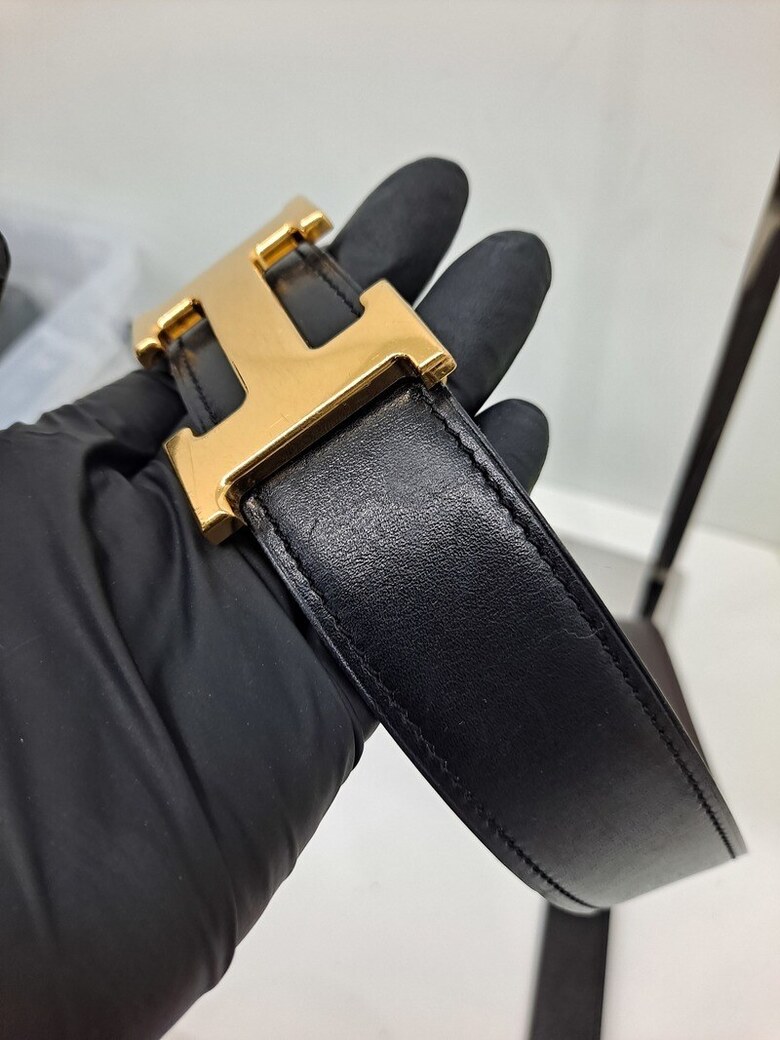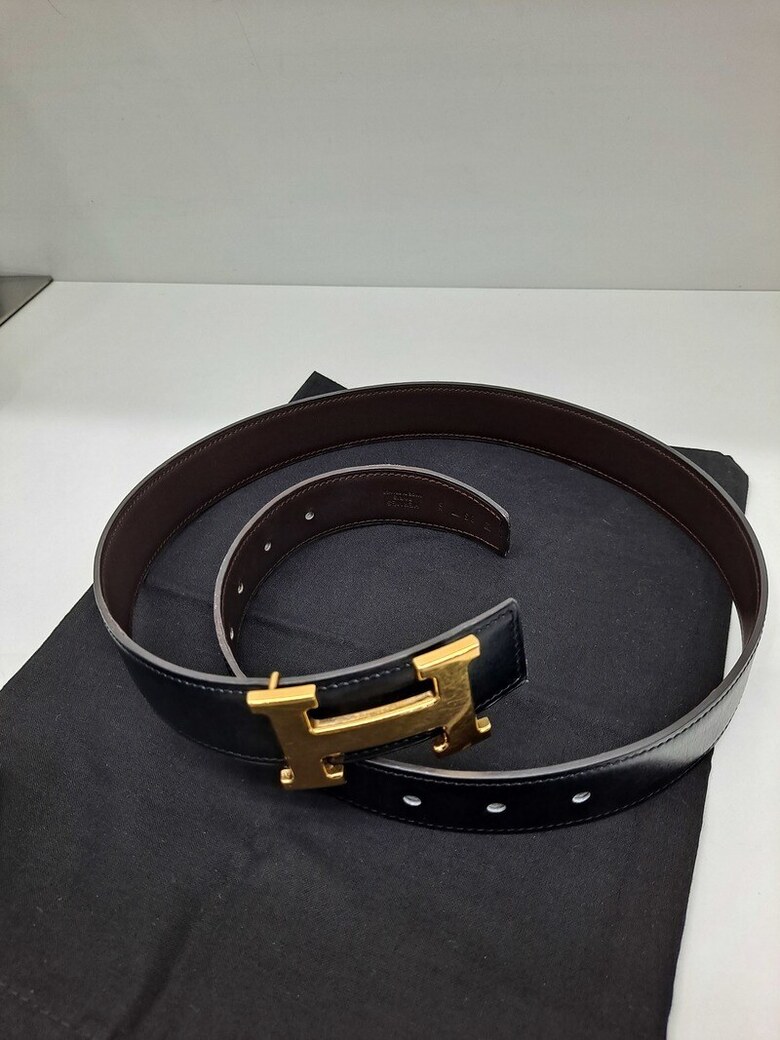 [중고명품] 에르메스 85 블랙 골드 콘스탄스 H 버클 리버서블 가죽 벨트