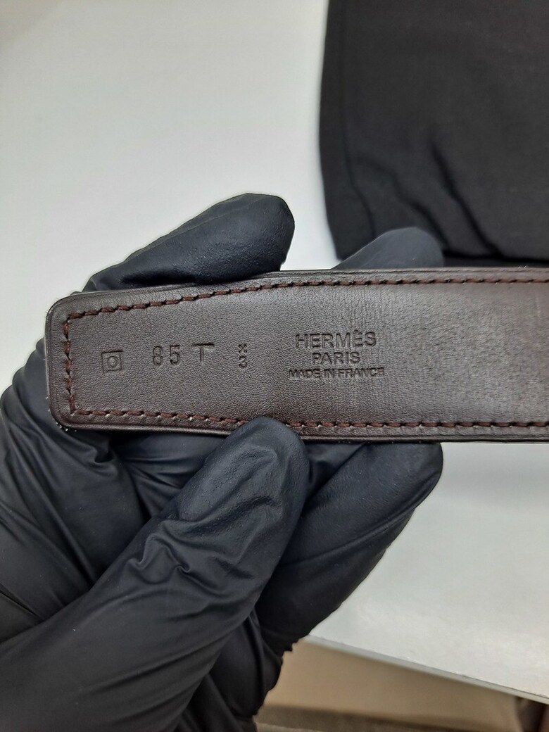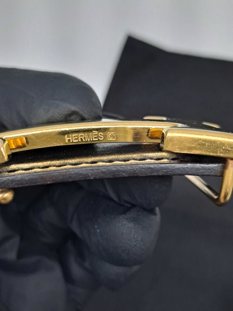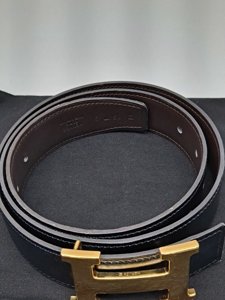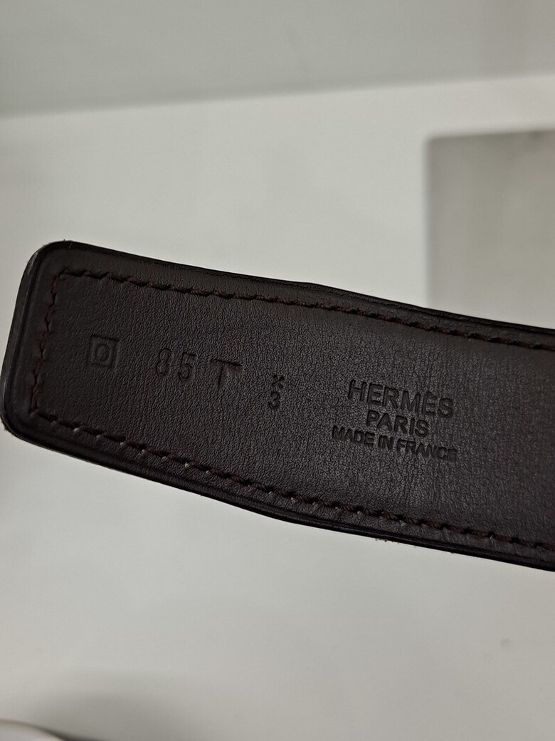 [중고명품] 에르메스 85 블랙 골드 콘스탄스 H 버클 리버서블 가죽 벨트