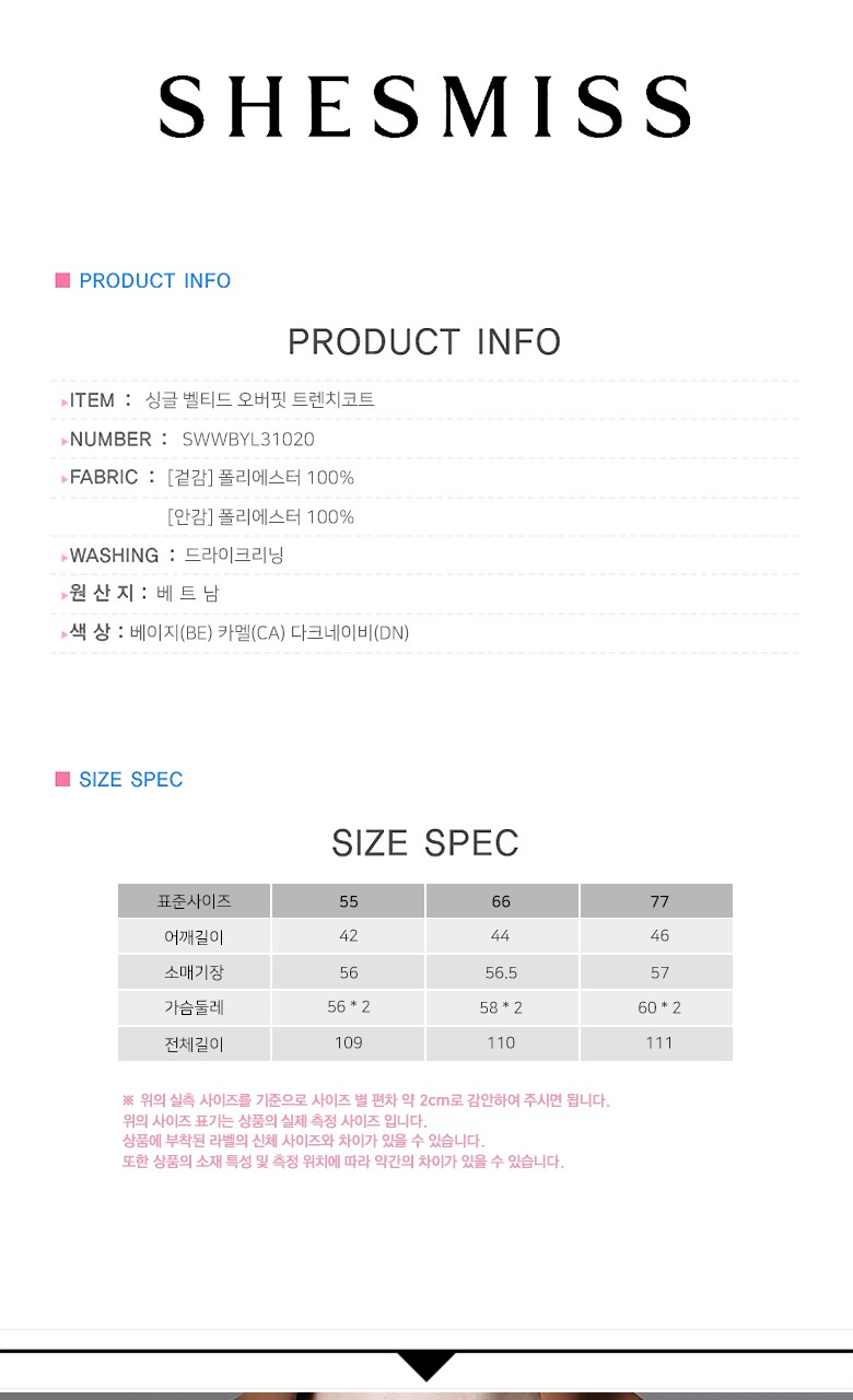 [쉬즈미스] 싱글 벨티드 오버핏 트렌치코트