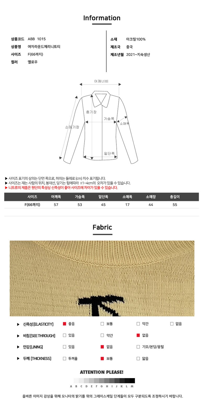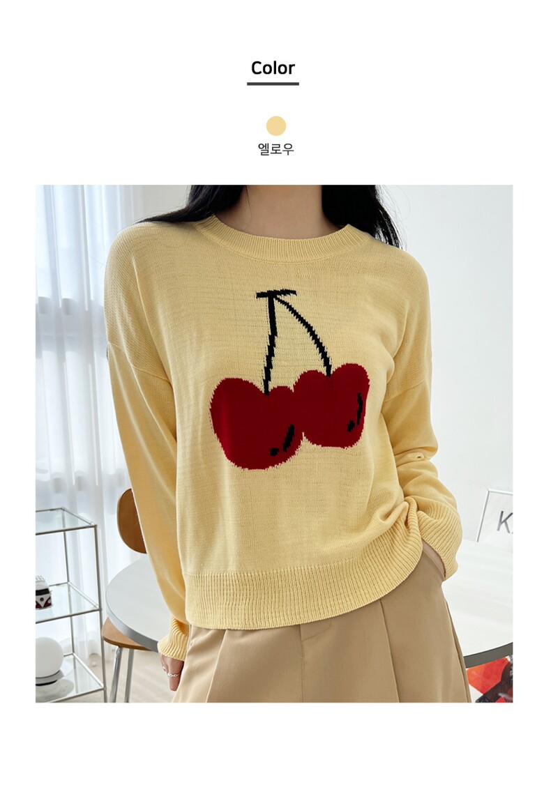 블레오 여성 봄 가을 라운드 체리 데일리 긴팔 니트