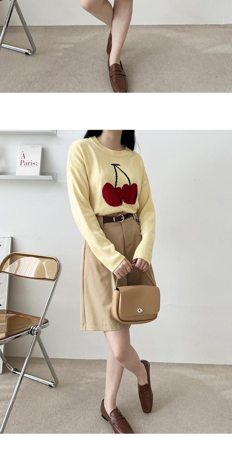 블레오 여성 봄 가을 라운드 체리 데일리 긴팔 니트